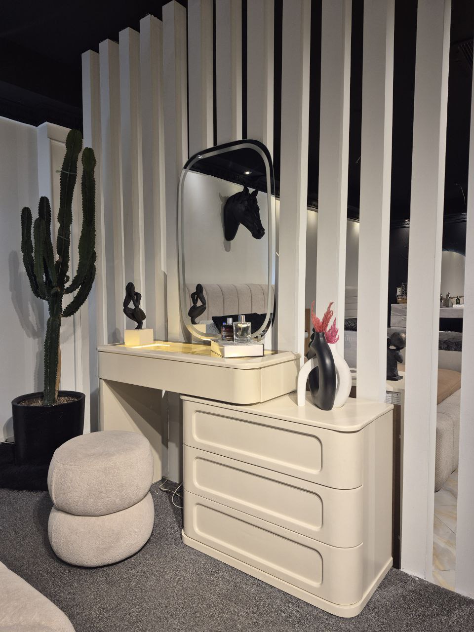 میز ارایش این سرویس به صورت دو تیکه کار شده که داخل هر اتاقی میتونه فضای خیلی کمی رو اشغال کنه
